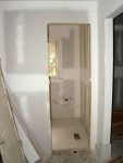 There has been alot of progress on the floors and trim this week.  The hardwood guys have finished their first rough sanding and should be back when the painting is finished for the final finishing.  The floors were much blonder than we anticipated, but we love the look so far.  It looks like a new old place.  The floor tile has been set in all three bathrooms.  We chose three different tiles for all three bathroom.  There was a good deal on marble at Lowe’s, so we chose that for our master bathroom.  Hopefully, the grout and showers will be done next week.  Trim has been going up throughout the house to tie everything together.  It is exciting to see all the progress.  The porch ceiling has been stained and creates a new feel for the entrance.  If all goes well, we will be moving in at the end of July.  It is looking like the beginning of August right now, though.  Two weeks!  Two weeks!