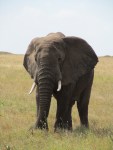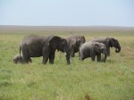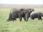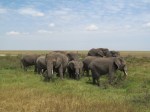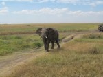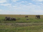 Within minutes of entering the park we saw Ostrich and numerous Gazelle. We learned that the female gazelles tend to stay in a herd with one male watching over them. You can imagine the jokes that were made in a car of four males and one female. We then drove up into a herd of elephant. While watching the herd walk past our vehicle on either side we noticed more large elephants coming from behind the low rolling hills in the distance. One elephant began trumpeting and running towards the jeep causing us to back up. About 1 hour into the park point the Serengeti had already exceeded our expectations.