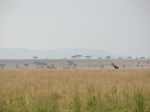 We then got back in the land cruiser and drove along the crater rim, unfortunately the cloud cover prohibited any decent views. After dropping down off the crater we drove through the rapidly browning plains dotted with Maasai, their livestock and giraffe, Kate was in heaven. About halfway between the crater and the Serengeti we stopped at Olduvai Gorge. Olduvai Gorge is known as the cradle of mankind. Over the last 100 years the site has been extensively explored and provided fossil records ranging from Homo habilis some 1.9 millions years ago up to Homo erectus from 1.2 million years before present. Much of this work was done by German scientists Louis and Mary Leakey. In addition to fossils, ancient footprints were found in this region. These Australopithecus afarensis tracks are thought to be from around the same time (~3.5 million years previous) as “Lucy” who was discovered in Ethiopia. We also learned Olduvai is named after the Aloe looking Oldupai plant found throughout the region which is utilized for water, medicinal qualities, and its fibers. Kate, ever the teacher, was dutifully taking notes and photos to bring back to her students. On the way out of Olduvai we also saw the Maasai guard napping behind the gate but he looked to be a ways past sleeping. Thanks to Wikipedia for refreshing our memories us on some of the Olduvai details.