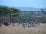 A full day in the Serengeti and the excitement was not yet over. At the wildcamp there are a handful of tents, all Harry Potter style. They included two double beds, a sink and mirror, toilet, and shower. The yard around the camp was filled with wildebeest and zebra – and no fence. We enjoyed a beer with the sunset and wildlife, then an amazing dinner in the dining tent. At night, we were lulled to sleep by the wildebeest grunts, zebra, and crickets. There was the occasional hyena and Andy claims he heard a lion, but this may have been Kate snoring.
