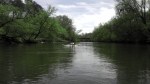 One of our favorites is to paddle the Neuse River.  Around Raleigh it is controlled by Milburnie Dam and and is most always high enough to paddle. The Neuse is a nice quiet retreat through an urban area.  There is something fascinating about paddling along a peaceful river that flows under many busy roads. Recently, Raleigh and Clayton have opened up the Neuse River Greenway, a 31 mile stretch of paved trail that follows the Neuse.  With only one car now and no way to shuttle, we thought this would be perfect for us and our bicycles.  We decided to break the trip up into two days.  The entire trip went from Falls Dam at Falls of the Neuse (at Falls Lake) to NC 42 Bridge in Clayton, for a total distance of about 32 miles.  The first day we started at Old Milburnie Rd put in to the NC 42 Bridge take out.  We stationed our bicycles at the end to ride the new greenway back to our car. Along the paddle we saw otters, deer, a few horses, and many water birds along the way.  One class II rapid around Poole Road makes it an exciting start, and it continued with a peaceful 4 1/2 hour ride.  The Neuse River Greenway was a great surprise.  Our take out point at NC 42 was a little far away from the start so we needed to go on some busy roads.  Other than that, we had a beautiful ride through Clayton countryside and along the river, for a total of 23 miles.
