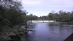 The second day we went out, rain was in the forecast.  We went ahead anyway thinking that it would be a sprinkle and we were already in the water.  Besides, what’s better than an 8 hour kayak/bike ride?  A kayak/bike ride in the rain!  This time we started at Falls Dam, where the kayakers go to surf in the waves below the dam.  We started just below the dam release and got to go through a class II+ rapids.  The beginning again was exciting and just as the previous trip, the last 4 1/2 hours were peaceful and calm.  The rain came and went but didn’t soak us too bad, only cooled us off a bit.  We made it to Old Milburnie Rd., our take out point, and had to portage across the dam.  The only route was through the poison ivy jungle, along a precarious brick wall carrying two kayaks.    After this brief inconvenience, we found our bikes and began the next part of the adventure.  The ride was pretty and again, it was so nice to have this getaway right in the heart of a city.  Unfortunately, the rain really started coming down along our bike ride and I think in this case it might have been more fun without it.  A few miles into the trail Andy said that he read part of the trail was not completed yet (should be spring 2014), but there was an easy workaround.  It turns out that the workaround was not too easy and we ended up going along busy two lane roads (Ligon Mill Road into Moss Creek Subdivision) with no shoulder in the pouring rain.  We finally found an entrance back onto a connecting greenway from a neighborhood and completed the bike ride for a total of 18 miles.